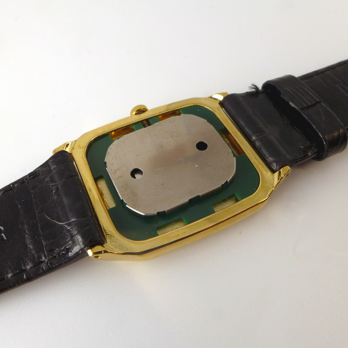 Being from the early 1990s, this slimline dress watch is on the smaller size at 27x35mm. In 1991 this was sold as a gents watch (with a smaller ladies pair watch available) though will suit anyone now.